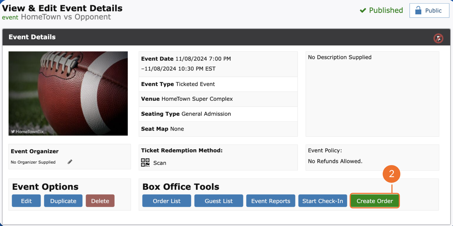 1. Navigate to the Create Order tool on the Event Details page