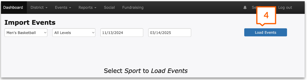Choose the Sport, levels, and date range of events you’re wanting to import and click Load Events