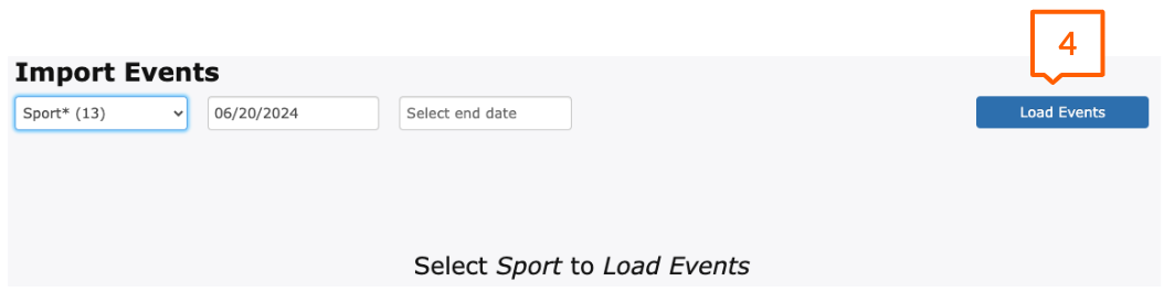 Choose the Sport, levels, and date range of events you’re wanting to import and click Load Events