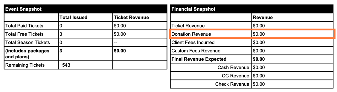 Once Donations are toggled on, any Donations made will be reported in 2 places: